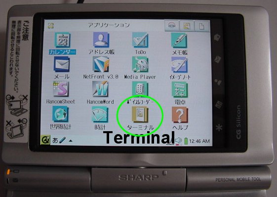(for the SL-C750 / C760 you'll need to first install the Terminal application from the Zaurus CD-ROM) |