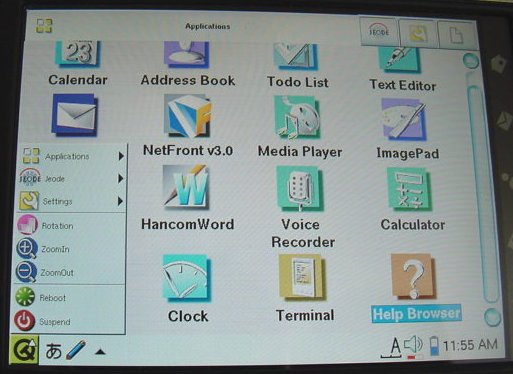 The following applications now have English menus: Calendar Text editor E-mail NetFront v3.0 (for web browsing) Media Player ImagePad HancomMobileSheet (spreadsheet) Voice recorder File manager Clock & City time Network setup |