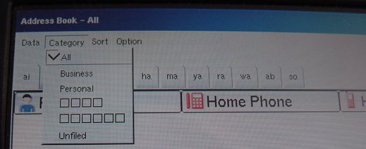 The following applications now have problem text menus: Address book (2 menu items and tabs JPN style, see picture) To Do list (2 menu items, see picture) HandcomMobile Word (all menu items, see picture) But, don't worry, this can be fixed too... see part #2 |