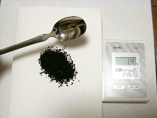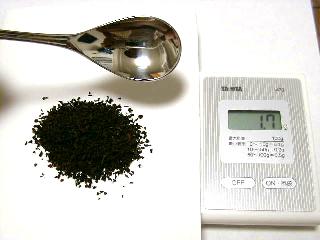中くらいのスプーンでも、1.7グラムの茶葉でした。