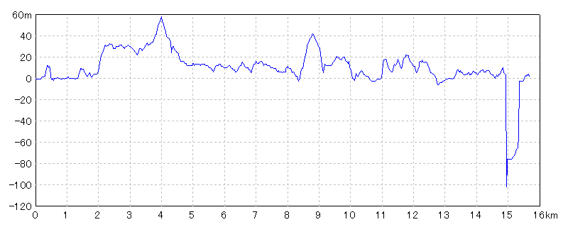 水平距離15.58km沿面距離15.75km