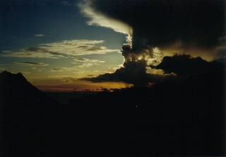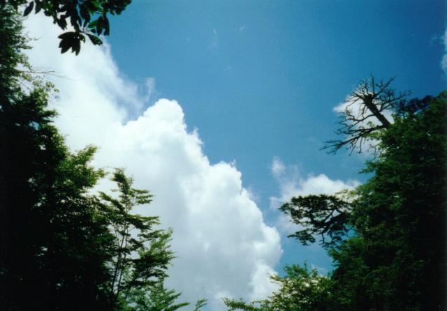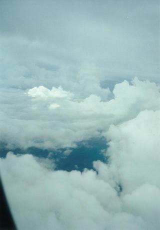 徐々に雲が増え、飛行機はさらに高度をあげます。薄い雲の南に真っ白に輝く入道雲が立ち上がっています。(竜の巣だ!)と心中叫びます。