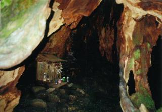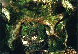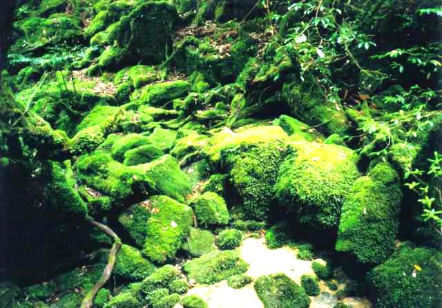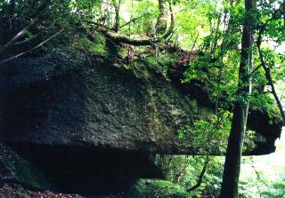 眼前に大きな岩屋が出現しました。ああ、これがもののけ姫の。立ち止まってシャッターを切り、そのまま歩き始めます。止まったら終わりだ。