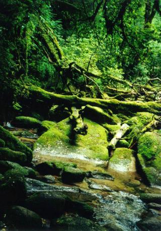 この辻峠から白谷雲水峡までの間の景色が、今日一日で一番気に入りました。緑の苔に覆われ、巨木の切り株・倒木跡に二代目の杉が育ち、美しい澄んだ水が流れます。