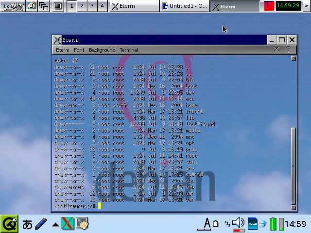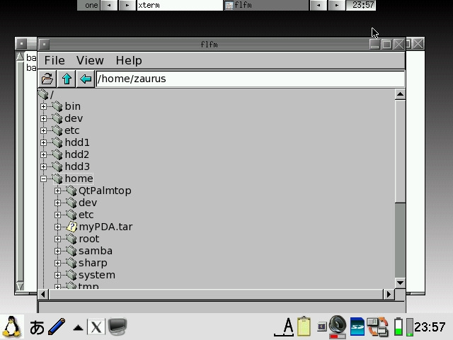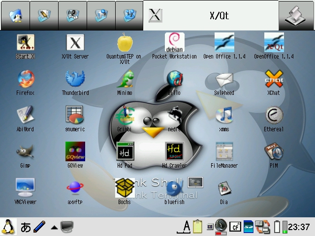 Alternatively, you can also use the xqt-debian-install.sh script with zaurus-debian-big-v0.18.tgz to install PocketWorkstation which will also work but you will need to install Firefox, Thunderbird, OpenOffice and Eterm yourself, and you will also only get the default icewm menu and themes.